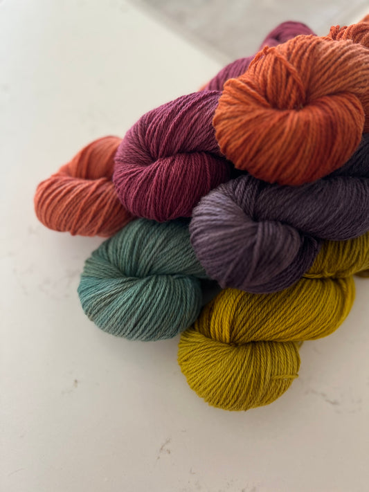 Hand-dyed natural fibers and knitting patterns for classic, wearable makes.