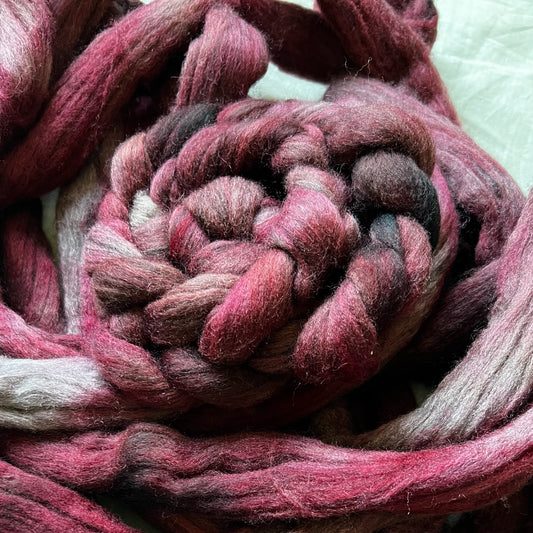 "Deep Raspberry" 4 oz. Grey Corriedale Combed Top